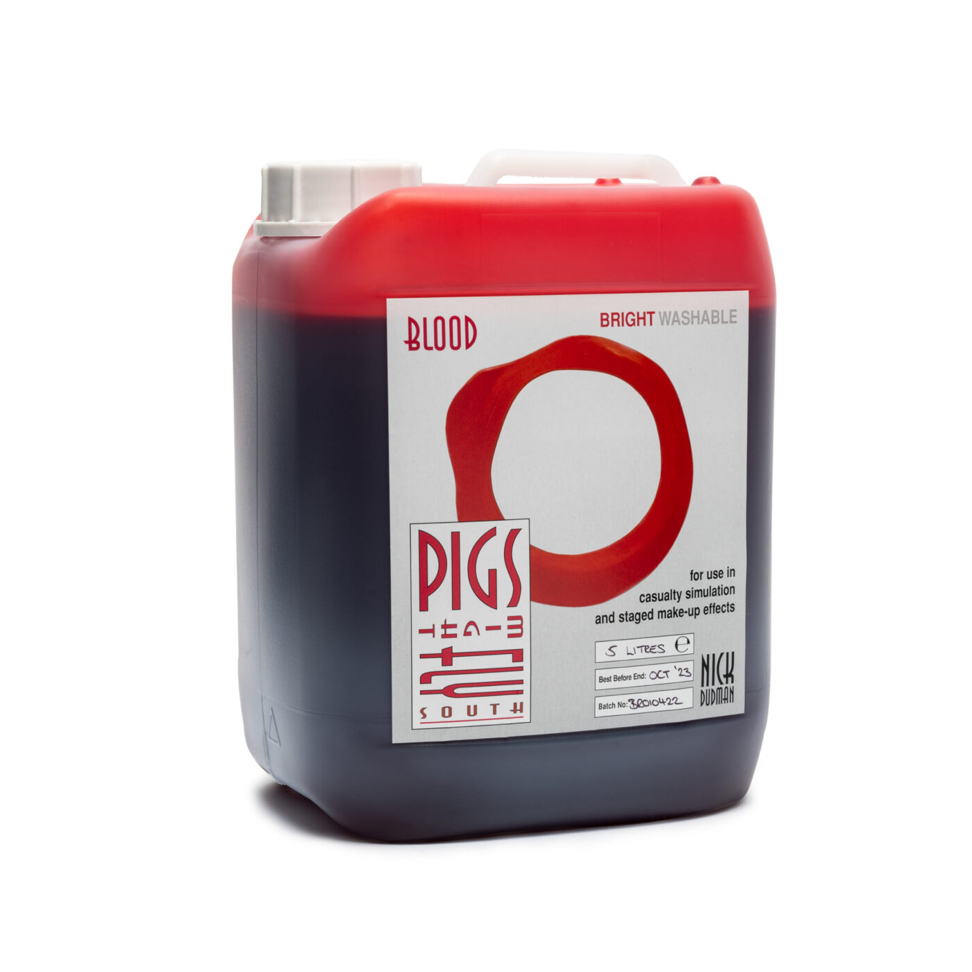 Based on the original formulation of Nick Dudman’s washable blood, this extra bright red blood has been produced by Pigs Might Fly South to satisfy the requirement for a realistic, non-staining blood that can be used on darker skin tones, on dark costume fabrics, or when light levels are at a low level.