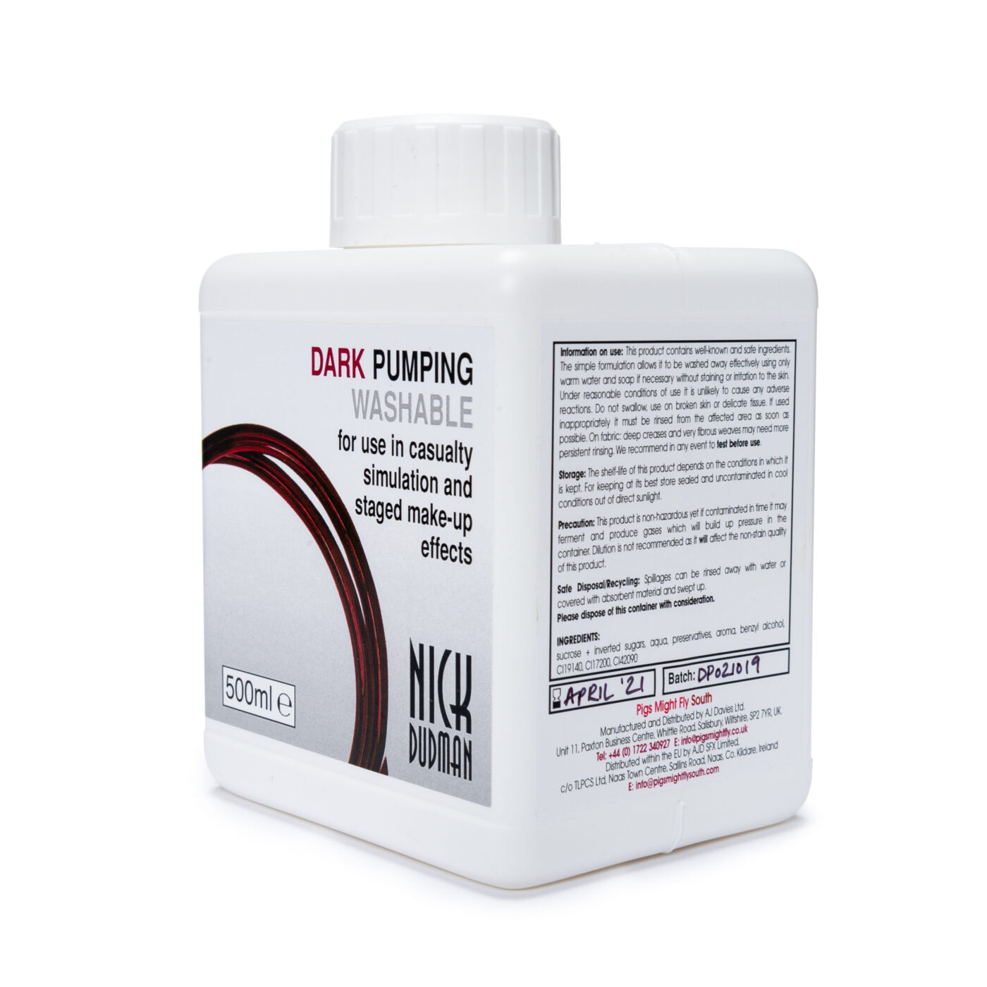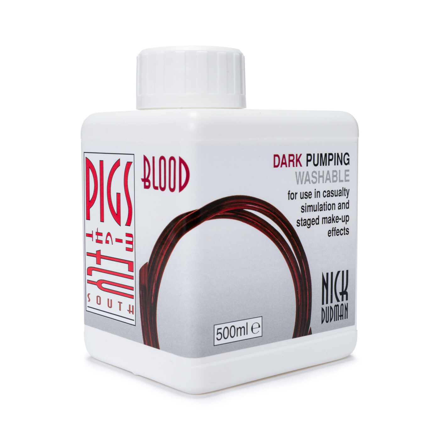 Based on the original formulation of Nick Dudman’s Dark washable blood, this pumping, or splatter, blood has been produced by Pigs Might Fly South to satisfy the requirement for an ultra-realistic, non-staining blood that can be used in blood pumps and medical equipment, as well as being suitable for situations where large quantities of blood are used to represent blood splatter. When used in blood bags/packs this pumping blood will soak into costume fabrics well, as opposed to running off the fabric surface. It is less affected by temperature than the original formulation but still retains the characteristic non-staining* qualities, as well as the exceptional colour depth and accuracy of the entire range of bloods.
