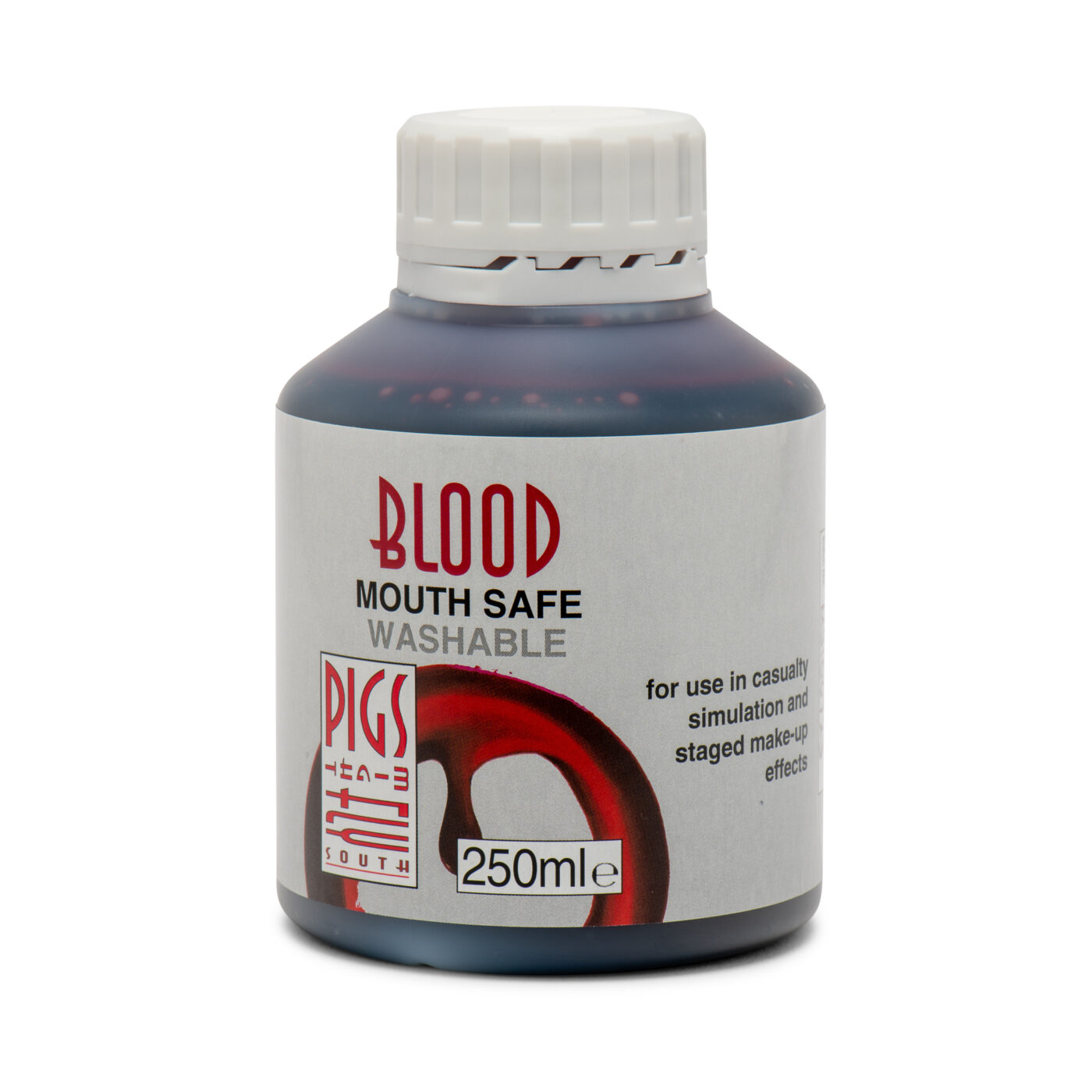 Based on the original formulation of Nick Dudman’s Dark washable blood, this non-staining and completely washable blood has been produced by Pigs Might Fly South for use in blood capsules or in mouth blood effects. Manufactured from 100% food-grade ingredients and in compliance with food hygiene standards, this blood replicates aged venous, or de-oxygenated blood.